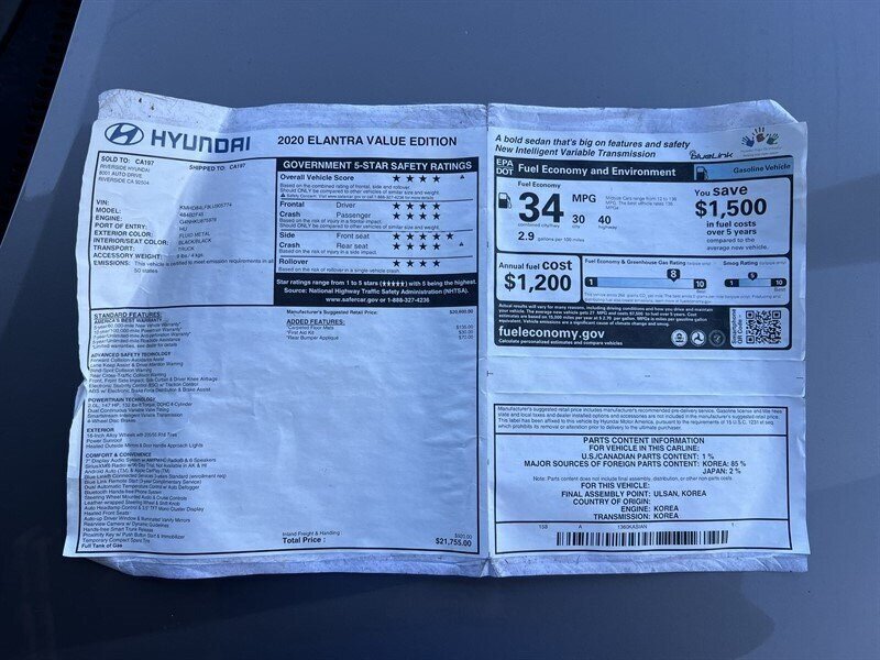 2020 Hyundai ELANTRA Value Edition